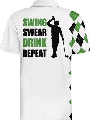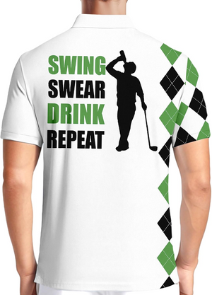 Funny Swing Green Polo Shirt American Flag Shirt Patriotic Golf Polo Shirts, Golf Gift For Men, Golf Shirts For Men