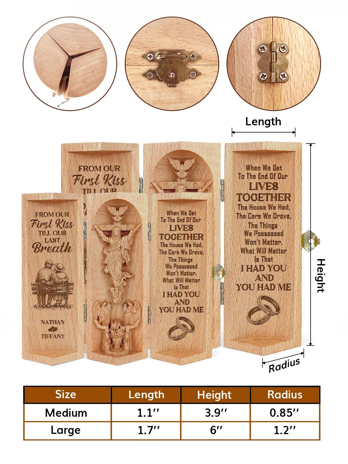 Get To The End Of Our Lives Together, Personalized Openable Wooden Cylinder Sculpture of Jesus Christ, Christian Gifts