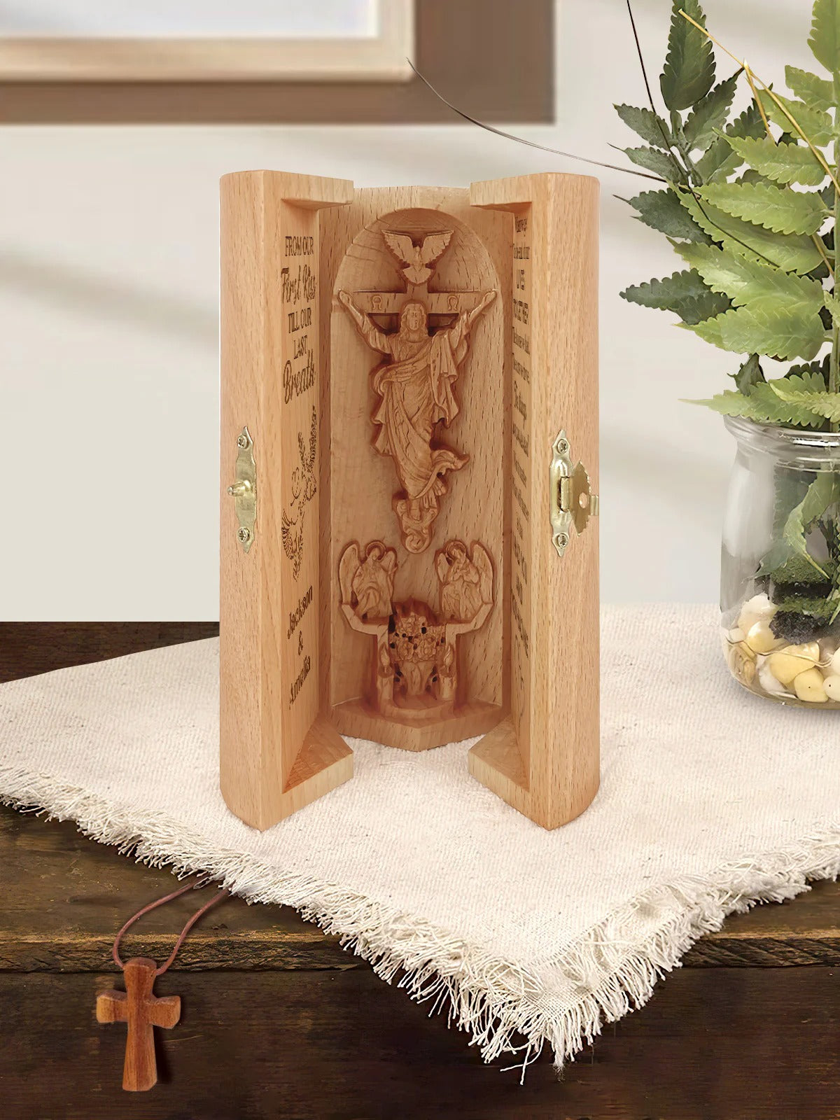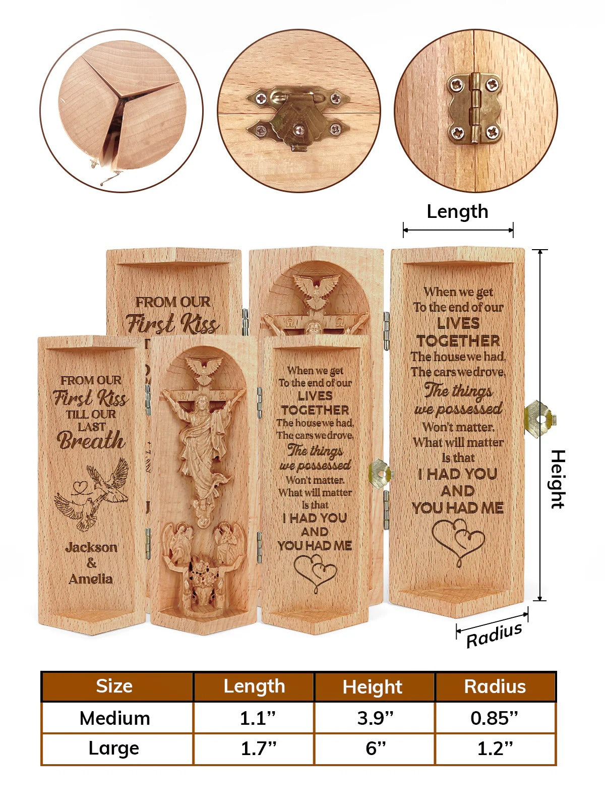 From Our First Kiss Till Our Last Breath, Personalized Openable Wooden Cylinder Sculpture of Jesus Christ, Christian Gifts