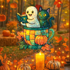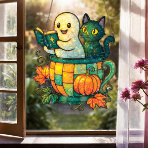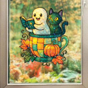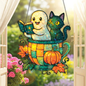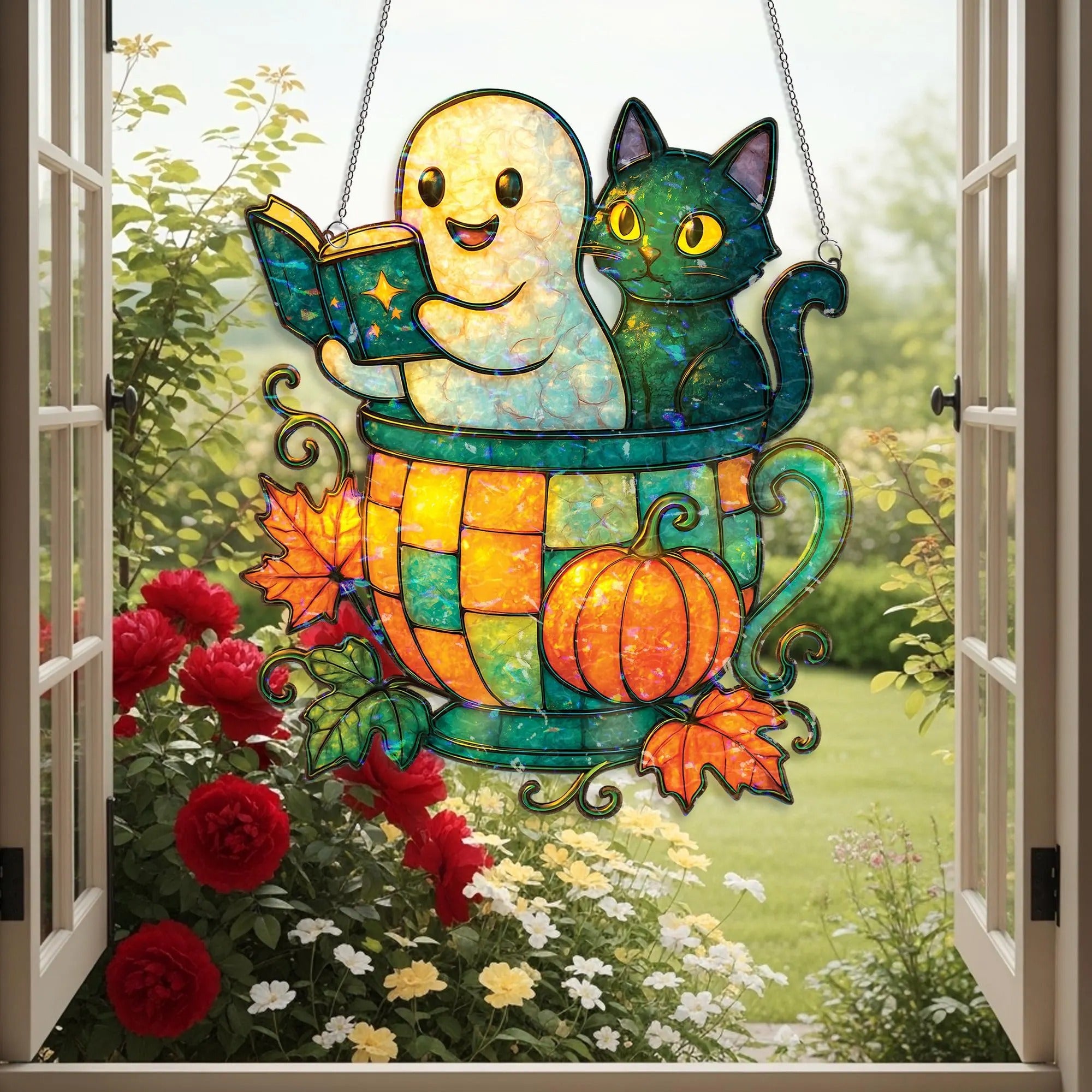 Ghost Reading Book Window Hanging, Acrylic Suncatcher, Christmas Gifts, Christmas Ornament