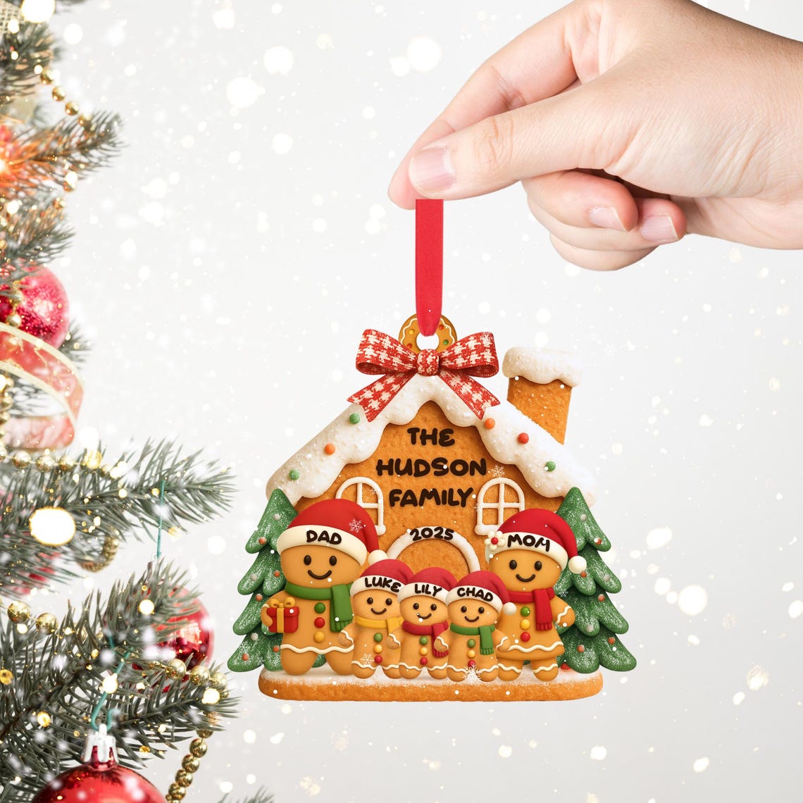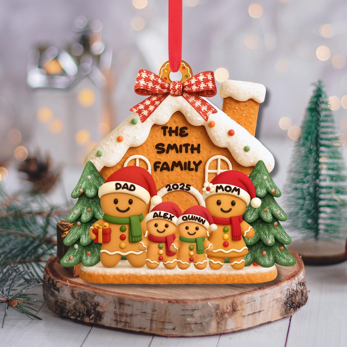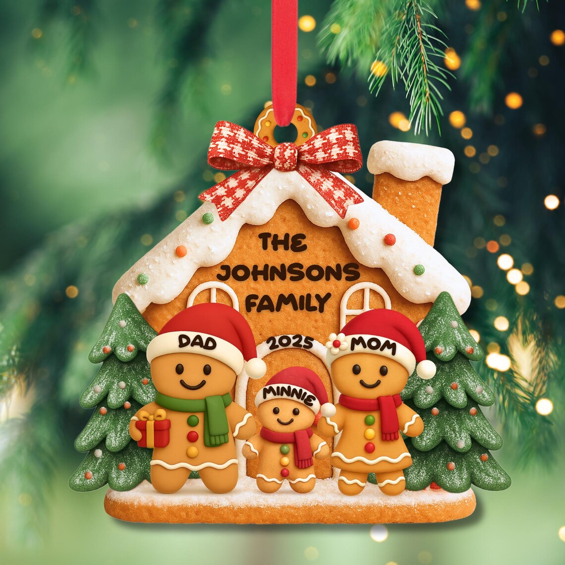 Gingerbread Family Christmas Ornament, Acrylic Christmas Decoration, Family Personalized Gifts