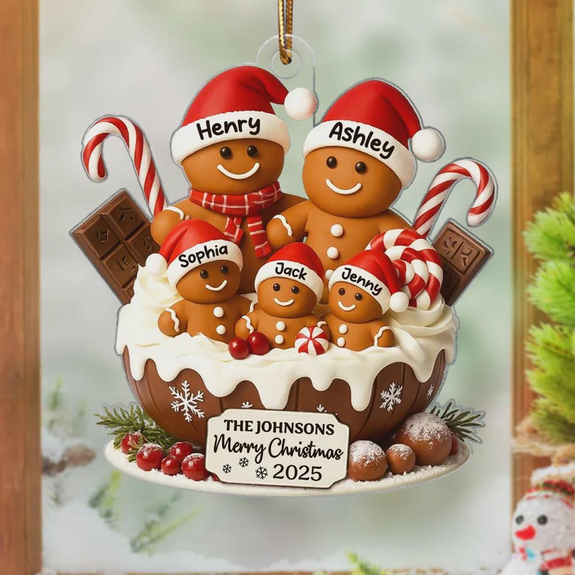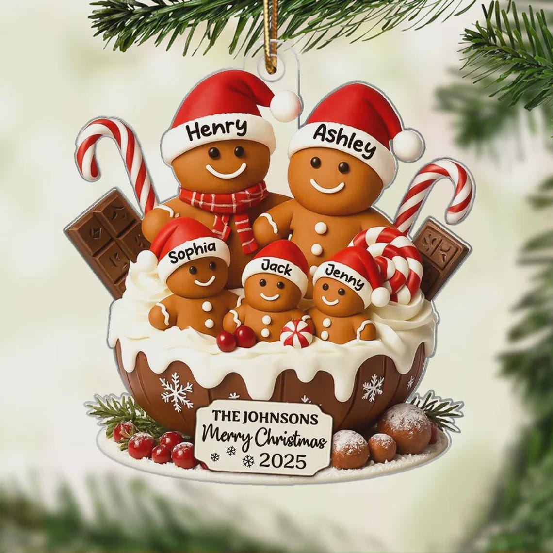 Gingerbread Family Christmas Ornament, Acrylic Ornament, Family Personalized Gifts, Christmas Tree Decoration