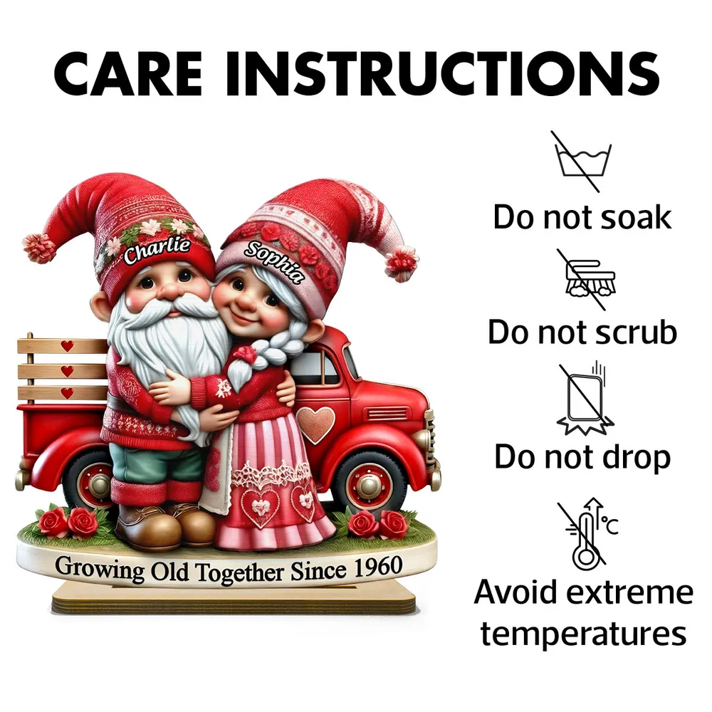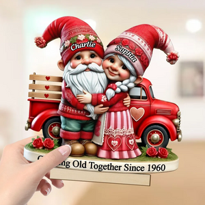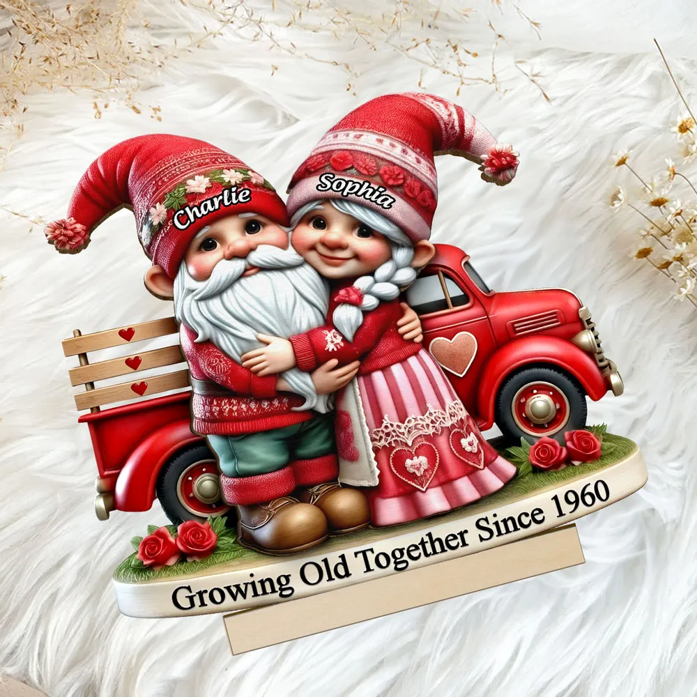 Gnome Couple Truck 2 Layered Wooden Plaque, Personalized Valentines Gift, Couple Anniversary Gift