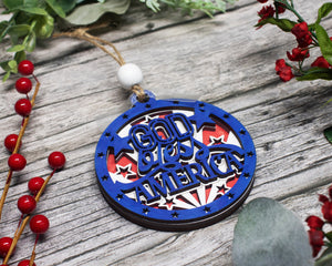 God Bless America, Patriotic Ornament, America Christmas Ornament, 3-Layer Wooden Ornament