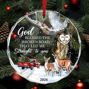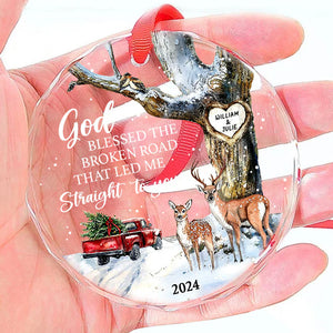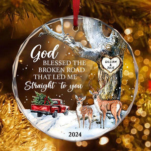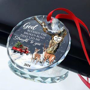 God Blessed The Broken Road That Led Me Straight To You Glass Ornament, Christmas Gift For Couple