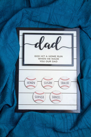 Crafted with precision and care, this wooden sign features the endearing message "God Hit A Home Run When He Made You Our Dad." It's a powerful reminder of the impact Dad has had on your family and the love and admiration you hold for him.