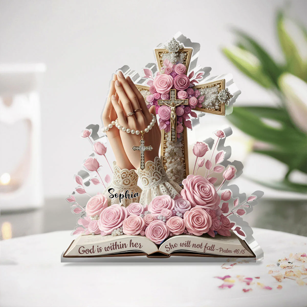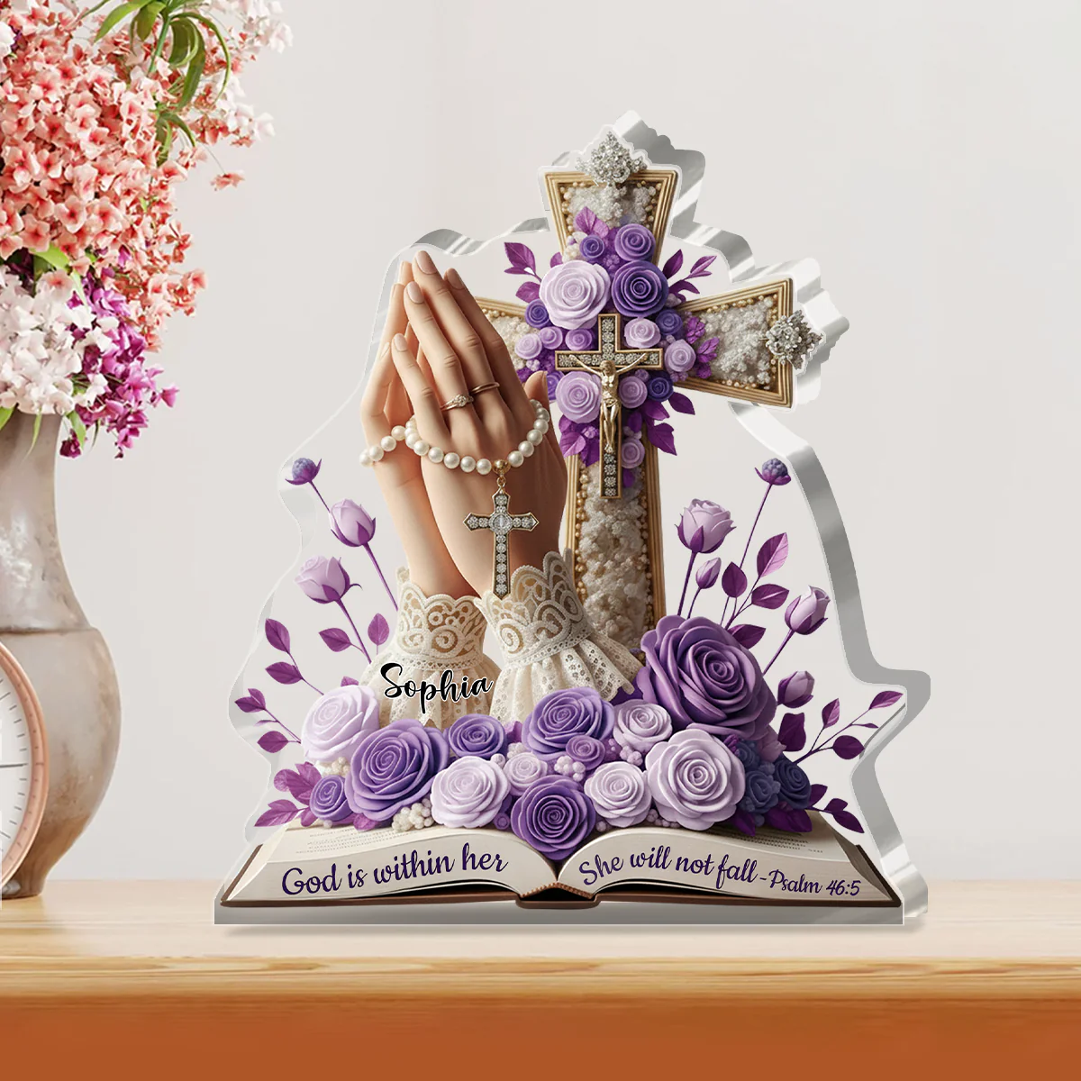 God Is Within Her She Will Not Fall Christian Memorial Acrylic Plaque, Custom Name Memorial Plaque