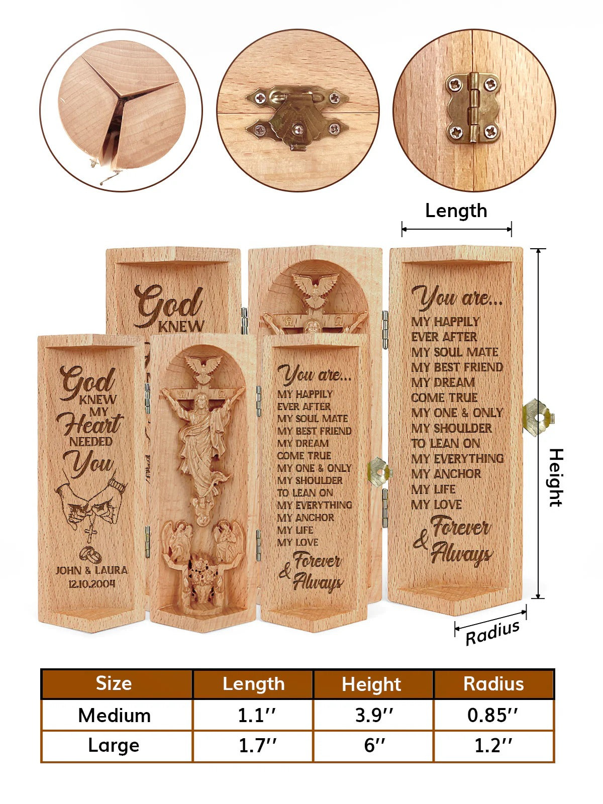 God Knew My Heart Needed You, Personalized Openable Wooden Cylinder Sculpture of Jesus Christ, Christian Gifts