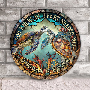 God Knew My Heart Needed You Personalized Round Wood Sign, Turtle Sign, Couple Gifts