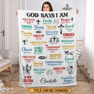 God Says I Am Custom Fleece Blanket, Mother's Day Gift, Gift For Mom, Christian Gifts For Women