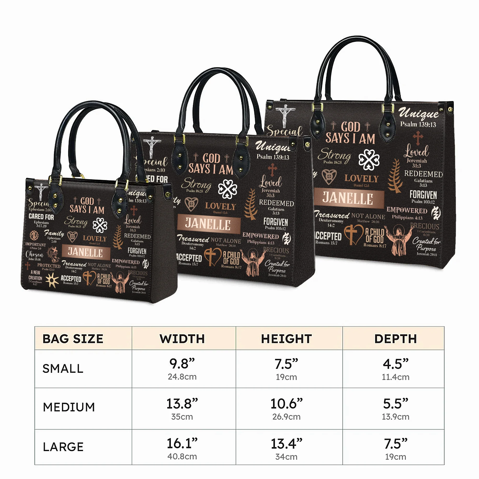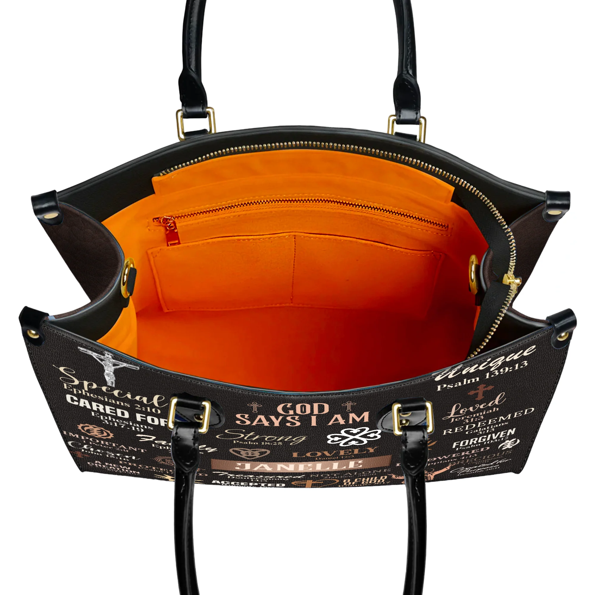 God Says I Am Special Loved Chosen Christian Identity Affirmation Personalized Leather Handbag