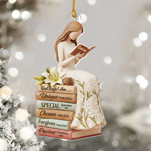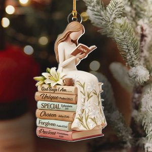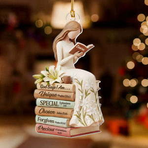God Says I Am White Lily Flowers Custom Name Acrylic Ornament, Christian Christmas Ornaments