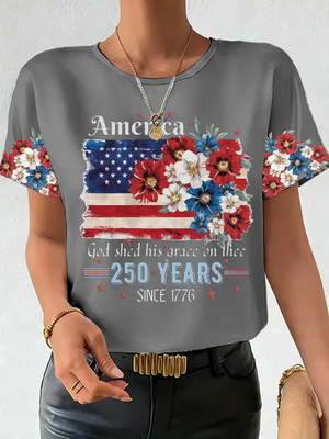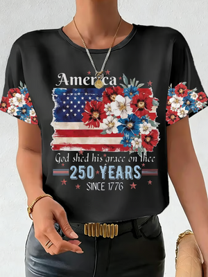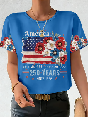 God Shed His Grace On Thee America Floral T-shirt, 250 Years of America Shirt, Christian Patriotic Tees