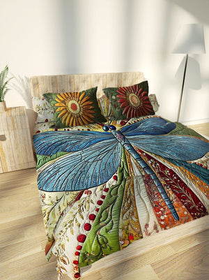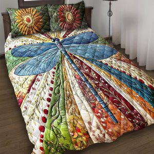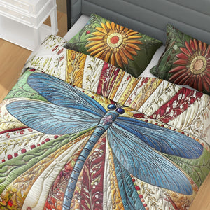 Golden Dragonfly Quilt Bed Sets, Bedding Set, Bedroom Decor