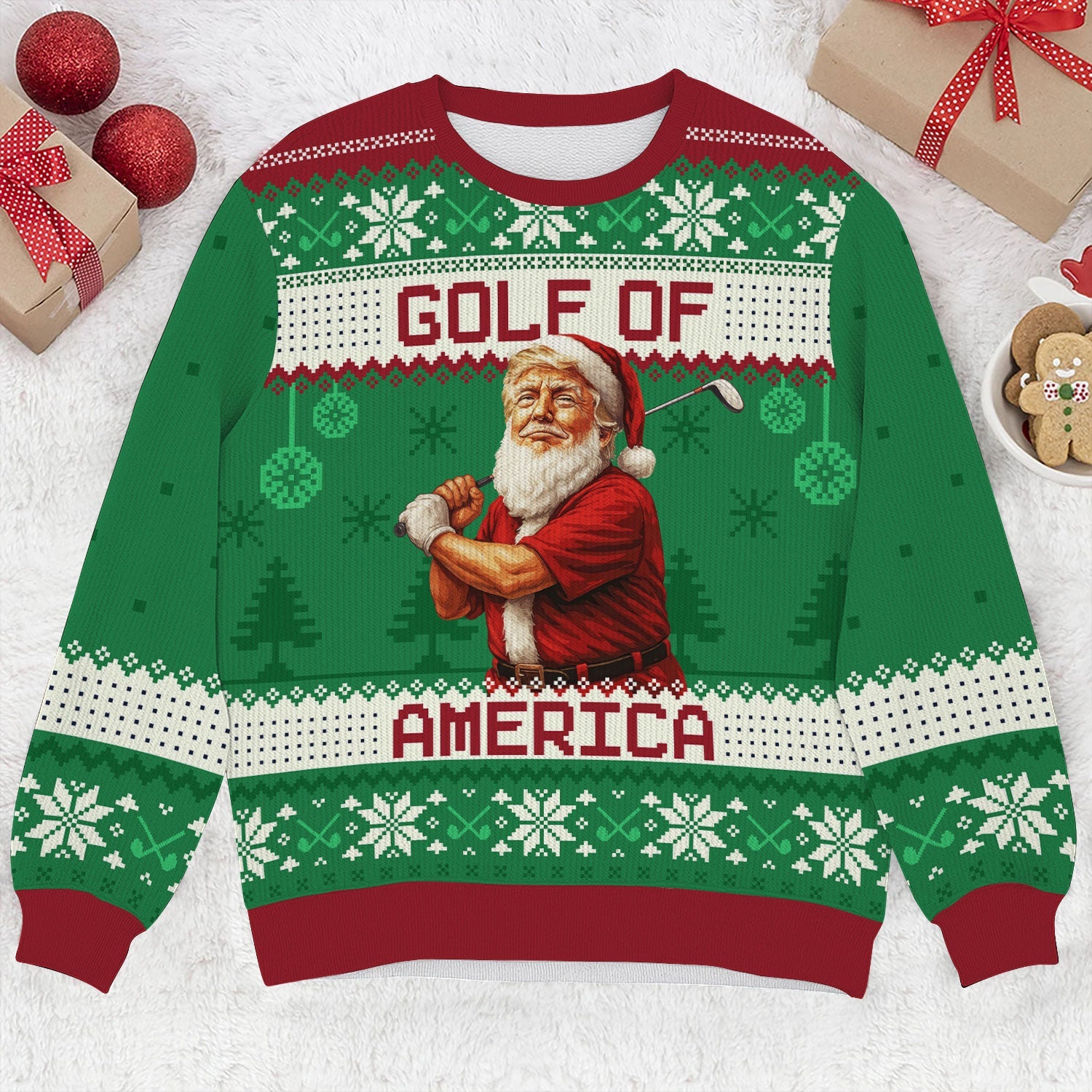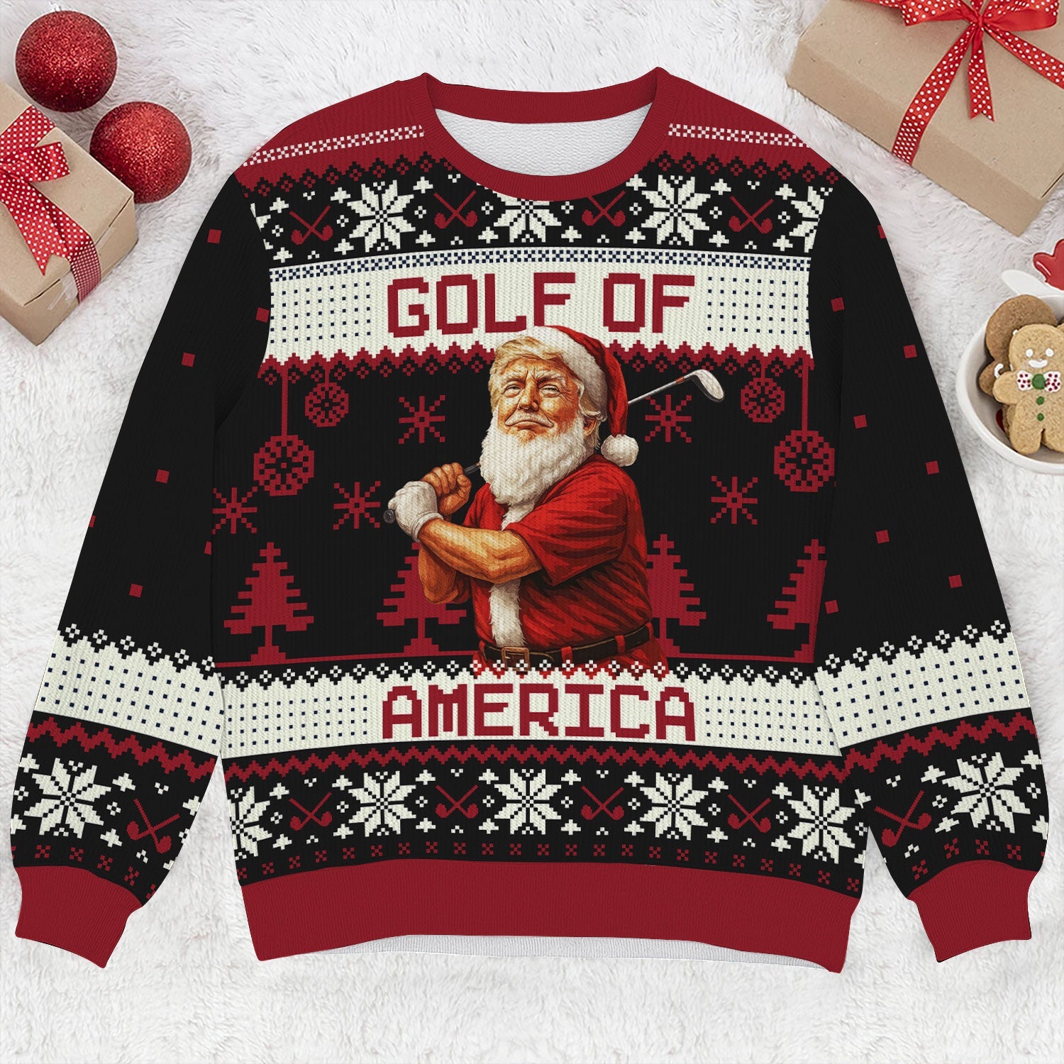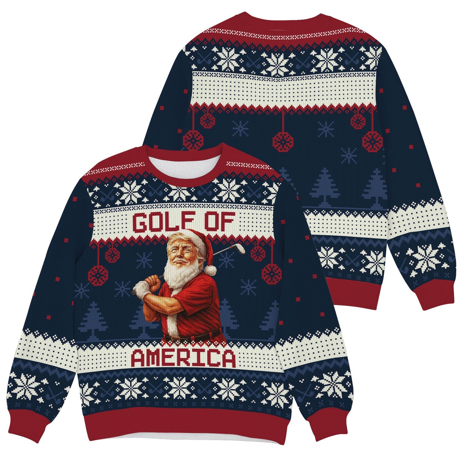 Forget boring fairway fashion — this sweater is what happens when Santa hooks one into the rough and decides to party instead. Perfect for ugly sweater contests, Christmas rounds, or that one office party where you swear you won’t talk about your handicap (but totally will).