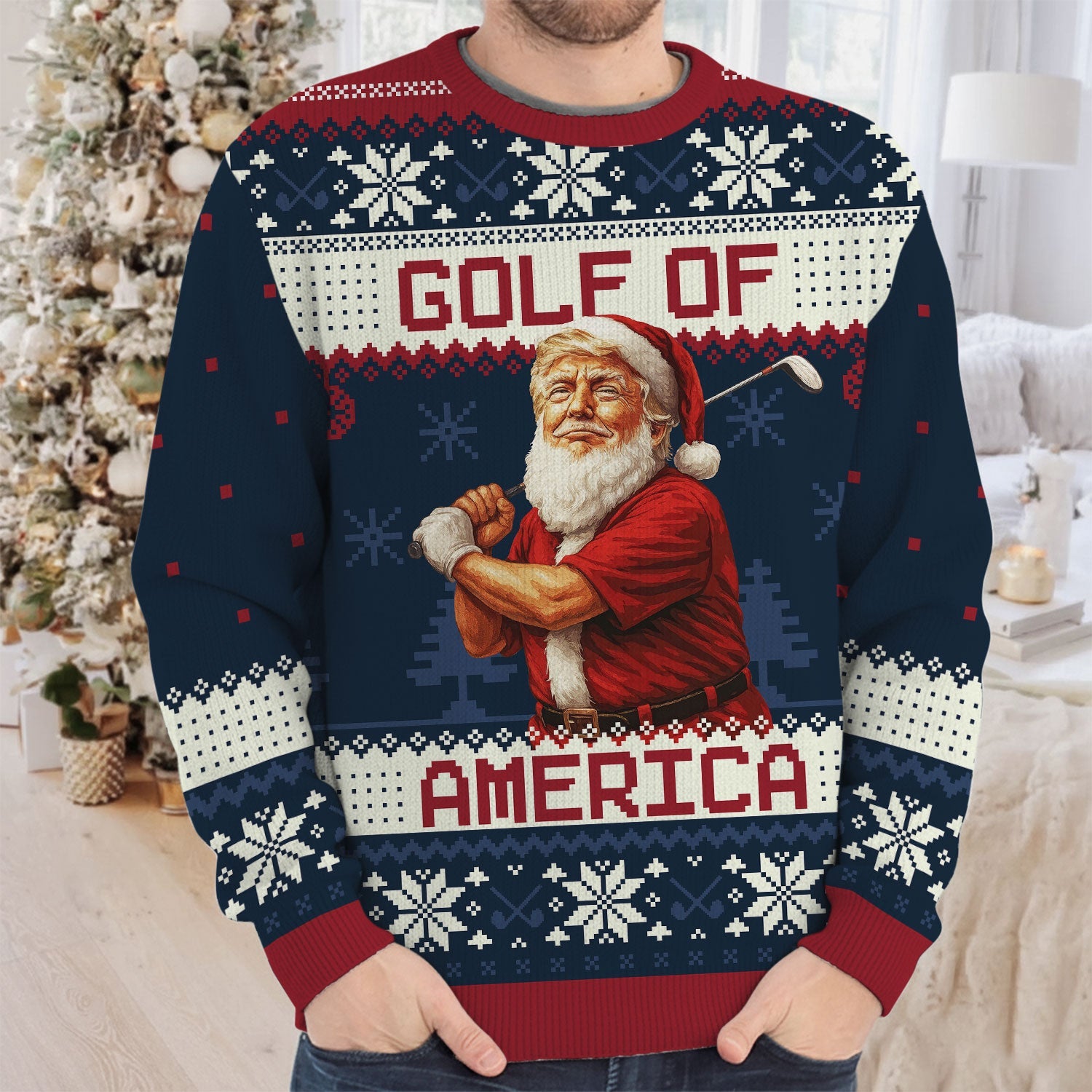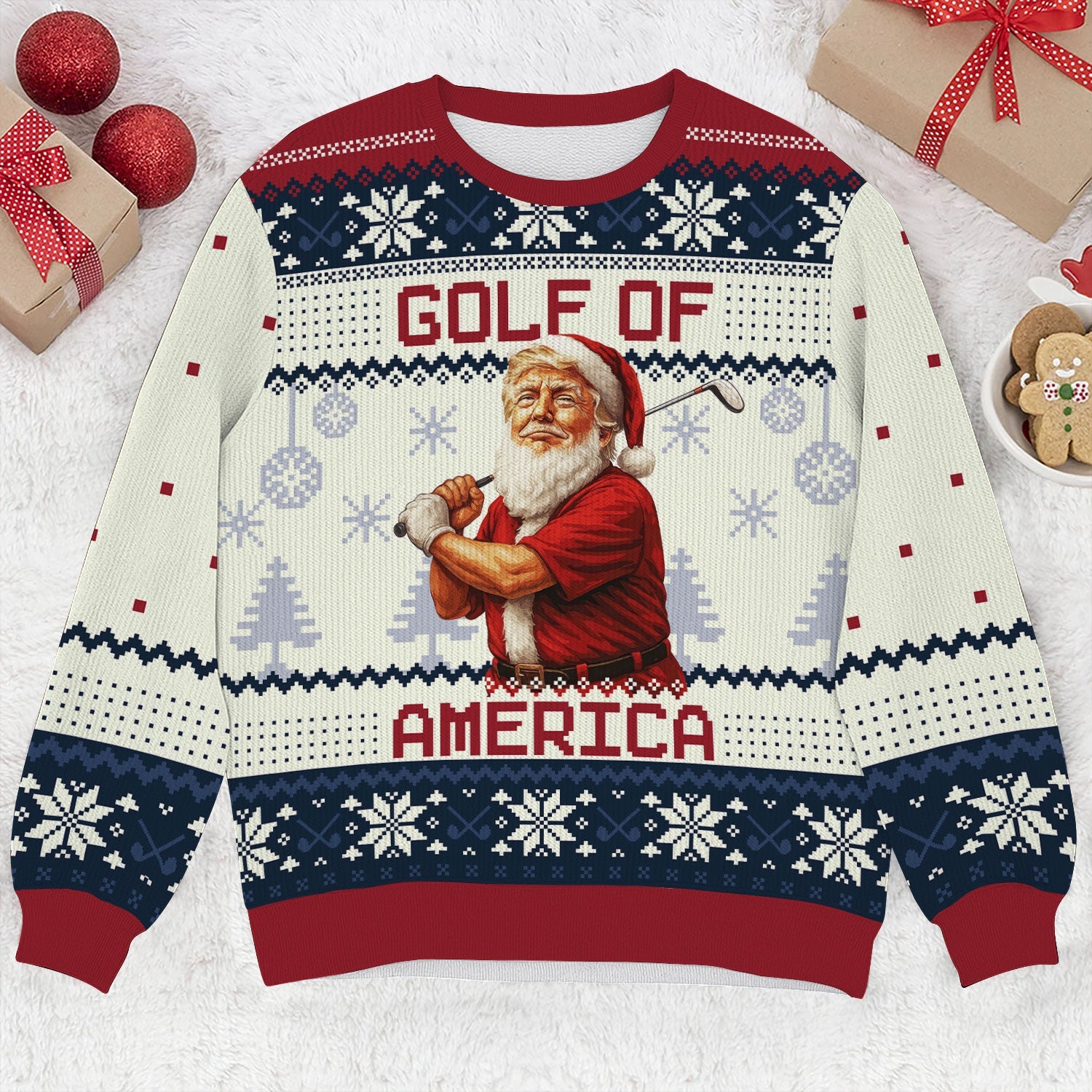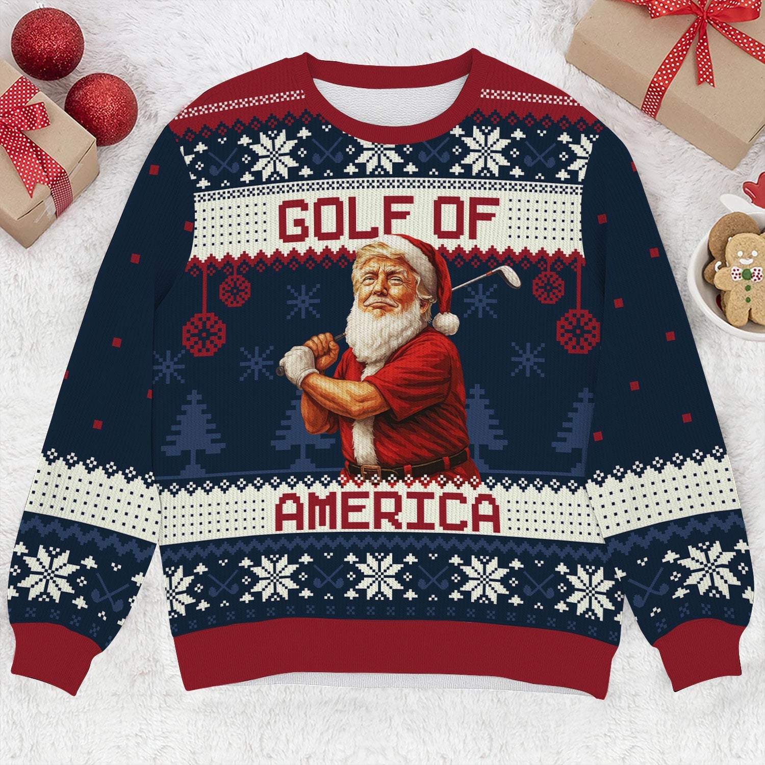 Forget boring fairway fashion — this sweater is what happens when Santa hooks one into the rough and decides to party instead. Perfect for ugly sweater contests, Christmas rounds, or that one office party where you swear you won’t talk about your handicap (but totally will).