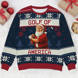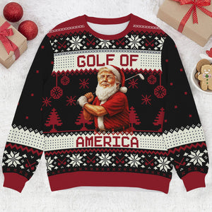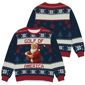 Introducing the Golf Of America Funny Santa Claus Christmas Ugly Sweater, Golf Ugly Christmas Sweater, Christmas Golf Shirt, where bad shots meet good vibes and Christmas spirit takes a full swing.