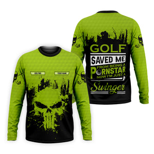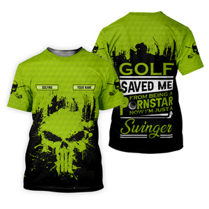 Golf Saved Me From Being A Porn Star Now I'm Just A Swinger Custom Green Skull Golf Polo Shirt, Dad Golf Gift