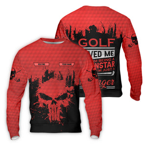 Bring laughter to the links with this bold and hilarious golf shirt! Designed for golfers with a cheeky sense of humor, this eye-catching red and black polo features the playful phrase “Golf Saved Me From Being A Porn Star – Now I’m Just A Swinger,” guaranteed to turn heads at the course or clubhouse.