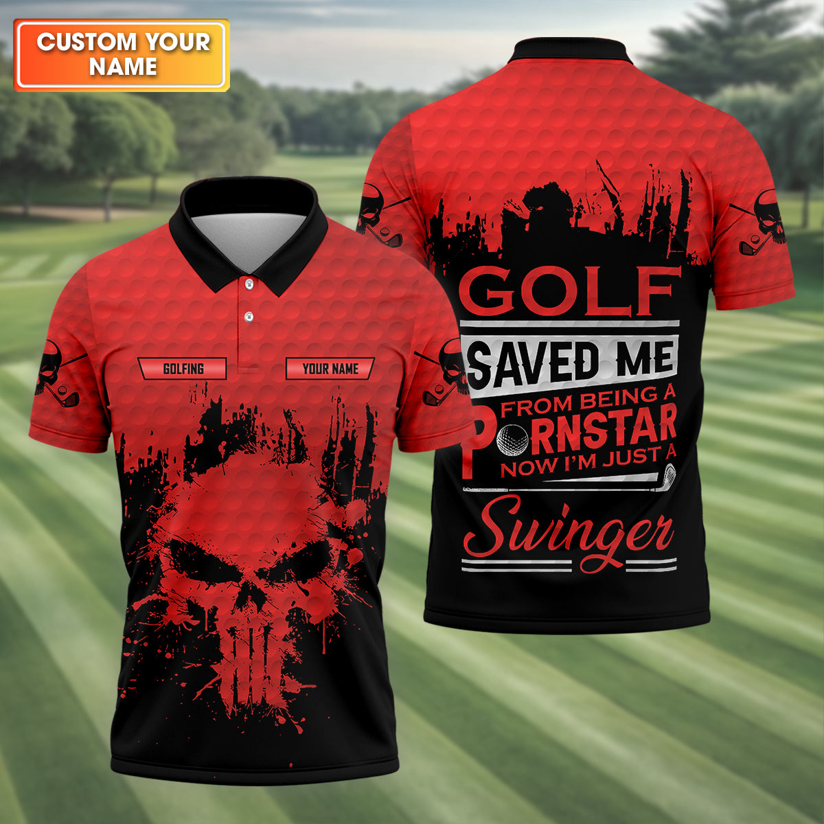 Golf Saved Me From Being A Porn Star Now I'm Just A Swinger Custom Funny Golf Polo Shirt, Dad Golf Gift