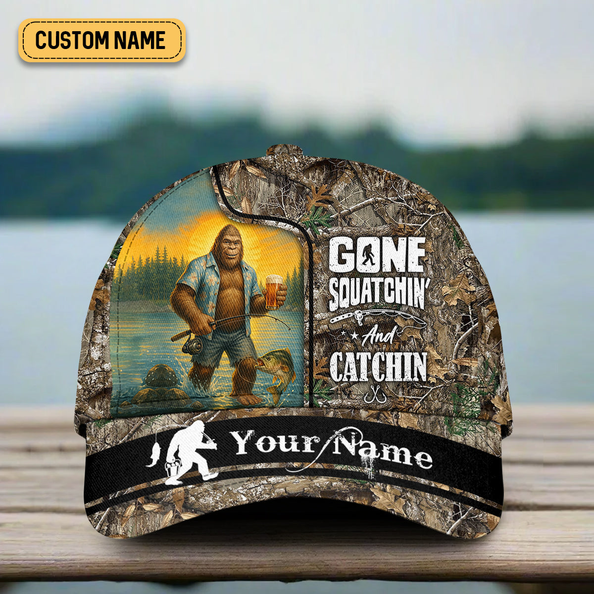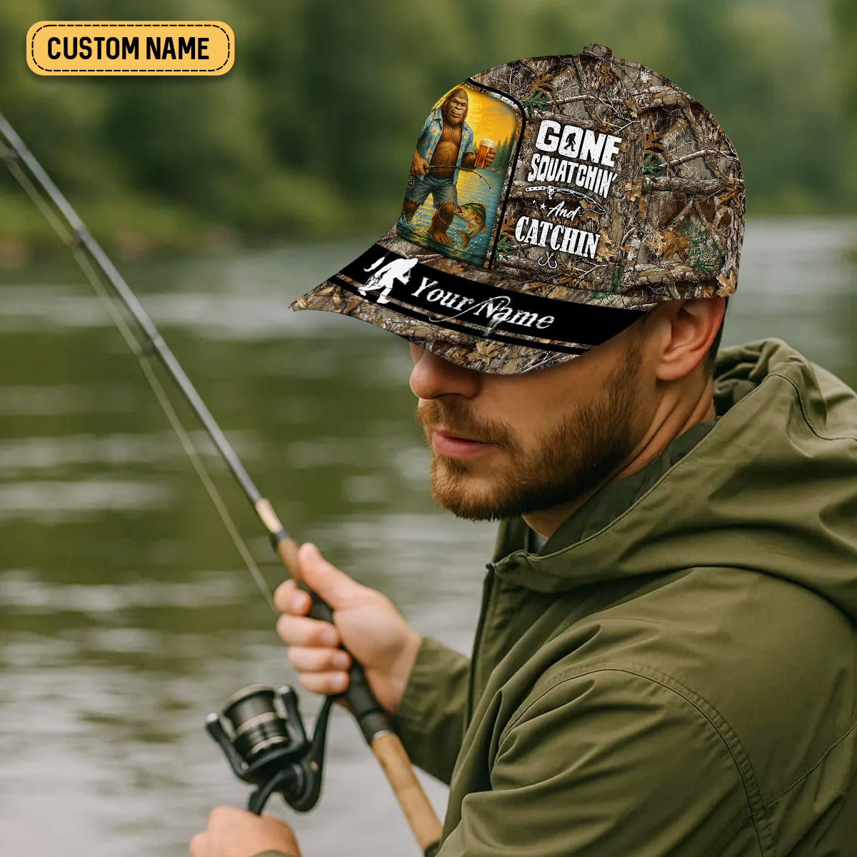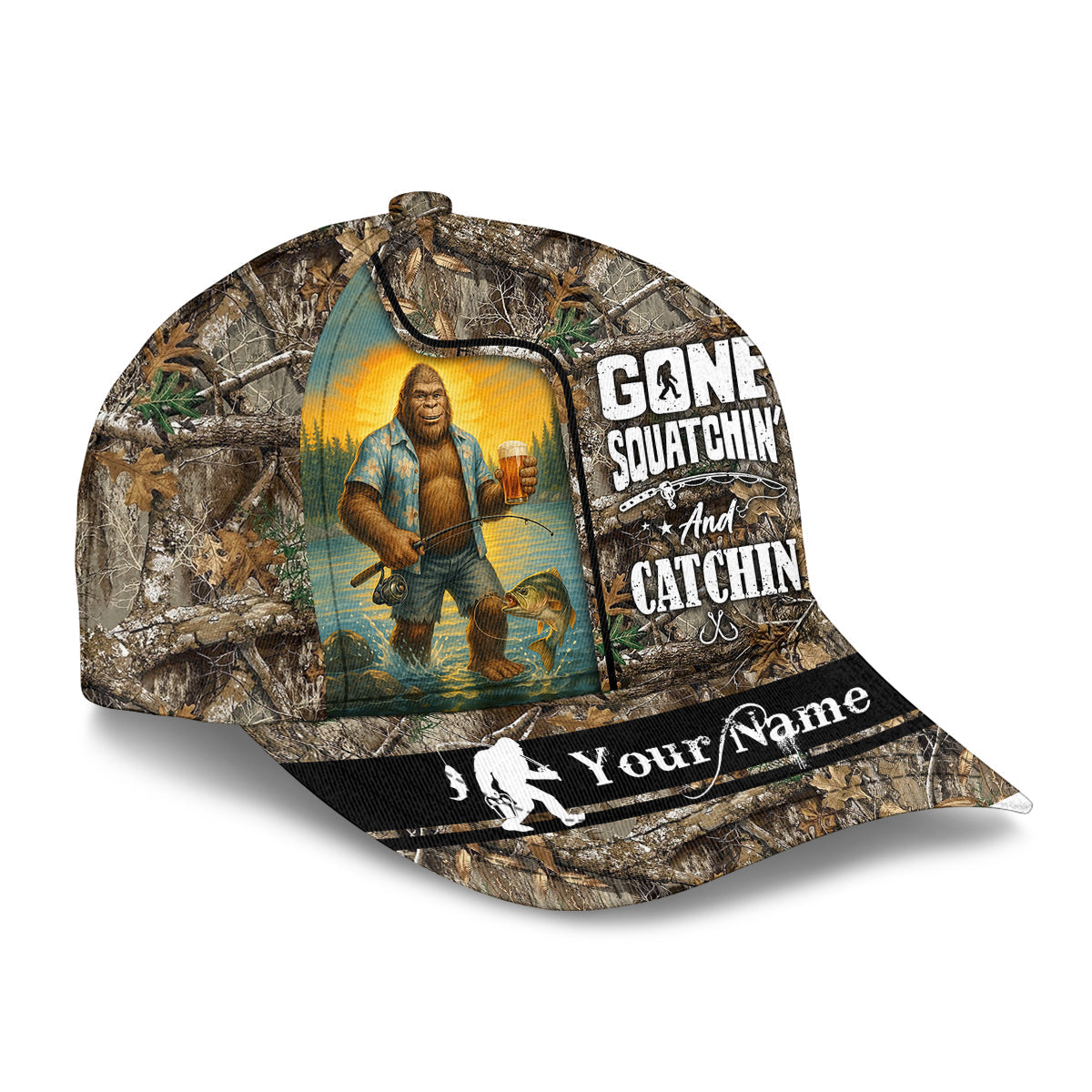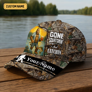 Gone Squatchin' And Catchin, Fishing Hunting Hat, Fishing Trucker Hat, Fishing Cap For Men, Fishing Gifts For Dad