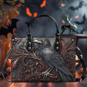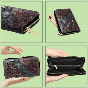 Goth Crow Leather Handbag With Wallet, Gothic Bags, Leather Bags For Women