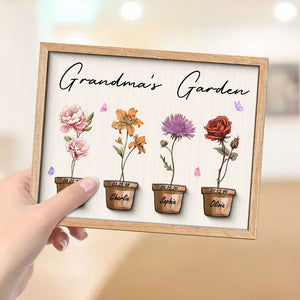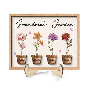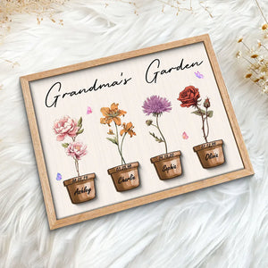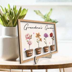 Grandma Garden Flowers Pots Personalized 2-Layer Wooden Plaque, Mother's Day Gift, Gift For Mom And Grandma