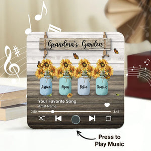 Grandma Garden Sunflower Vase Personalized Music Fridge Magnet, Custom Fridge Magnet, Gift For Family