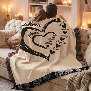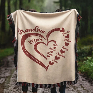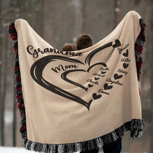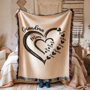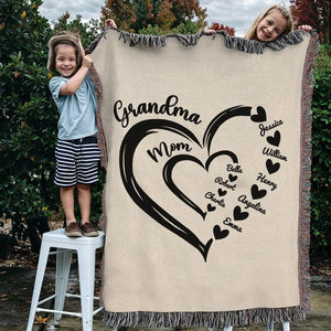 Grandma Mom Hearts Kids And Grandkids Names Custom Blanket, Gift For Grandma