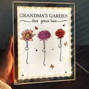 Grandma's Garden Custom Birth Month Flower Personalized LED Mirror Frame Lamp, Mirror Night Light