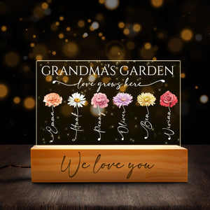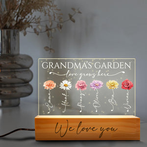 Grandma's Garden Love Grows Here Personalized Birth Month Flower Acrylic LED Night Light, Mothers Day Gift