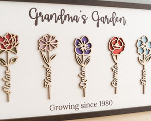 Grandma's Garden Personalized Birth Month Flowers Wooden Sign, Gift For Mom
