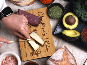 Customize this cutting board with the name or title of your choice (e.g., Grandma's Kitchen), creating a unique and meaningful gift. The engraving can also include special designs like floral accents, hearts, or a meaningful message to make it even more personal. -