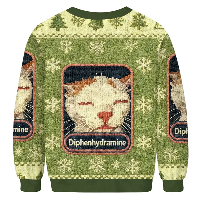 Green Diphenhydramine Drowsy Cat Meme Ugly Sweater, Gift For Cat Lovers, Christmas Ugly Sweatshirt