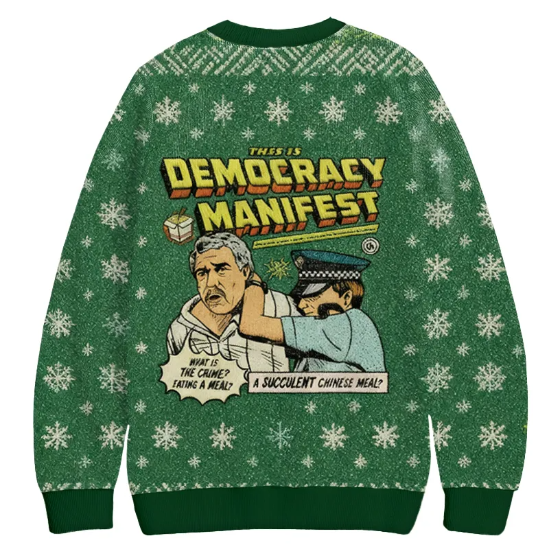 Green This is Democracy Manifest Vintage Christmas Sweater, Ugly Xmas Sweater, Christmas Ugly Sweatshirt