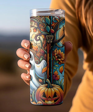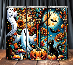 Halloween Autumn Night 20oz 30oz Tumbler, Funny Ghost & Cat Tumbler, Halloween Gifts