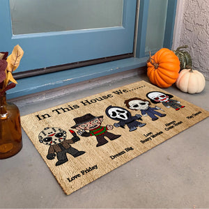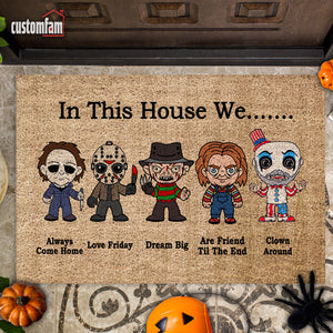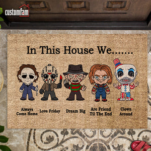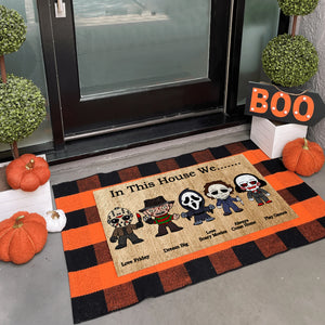 In This House We Horror Characters Doormat, Horror Movies Fans Gift, Halloween Decor
