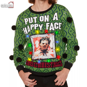Get ready to combine the spooky charm of Halloween with the festive cheer of Christmas with this Halloween Horror Movie Light Up Ugly Christmas Sweater. This unique pullover is the perfect way to showcase your love for horror movies while getting into the holiday spirit. It's the ideal outfit for ugly sweater parties, holiday gatherings, or simply adding a bit of frightful fun to your Christmas wardrobe.