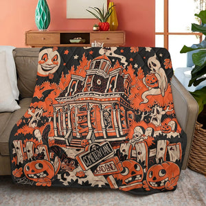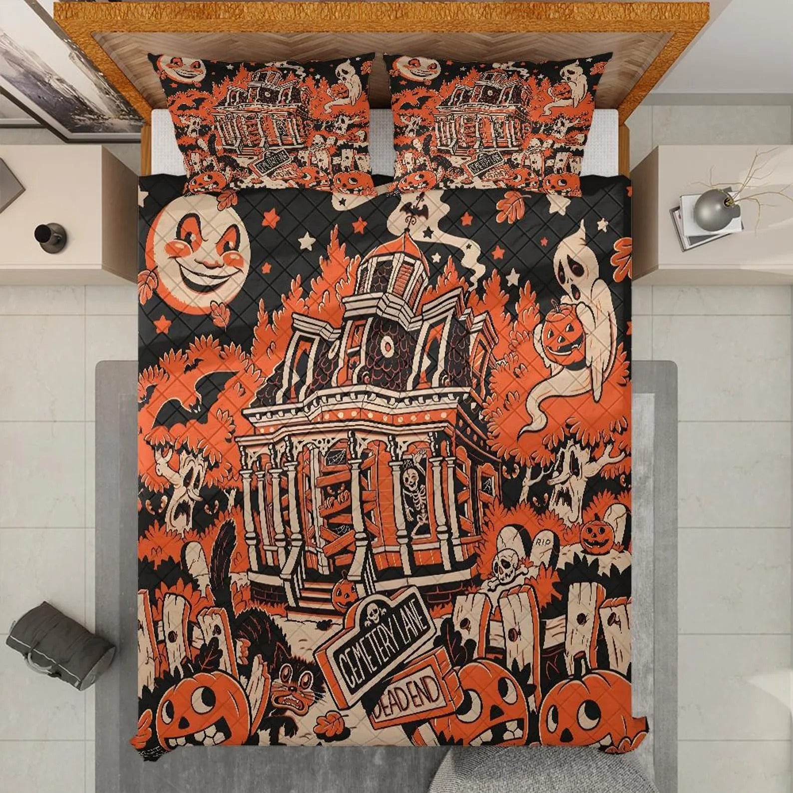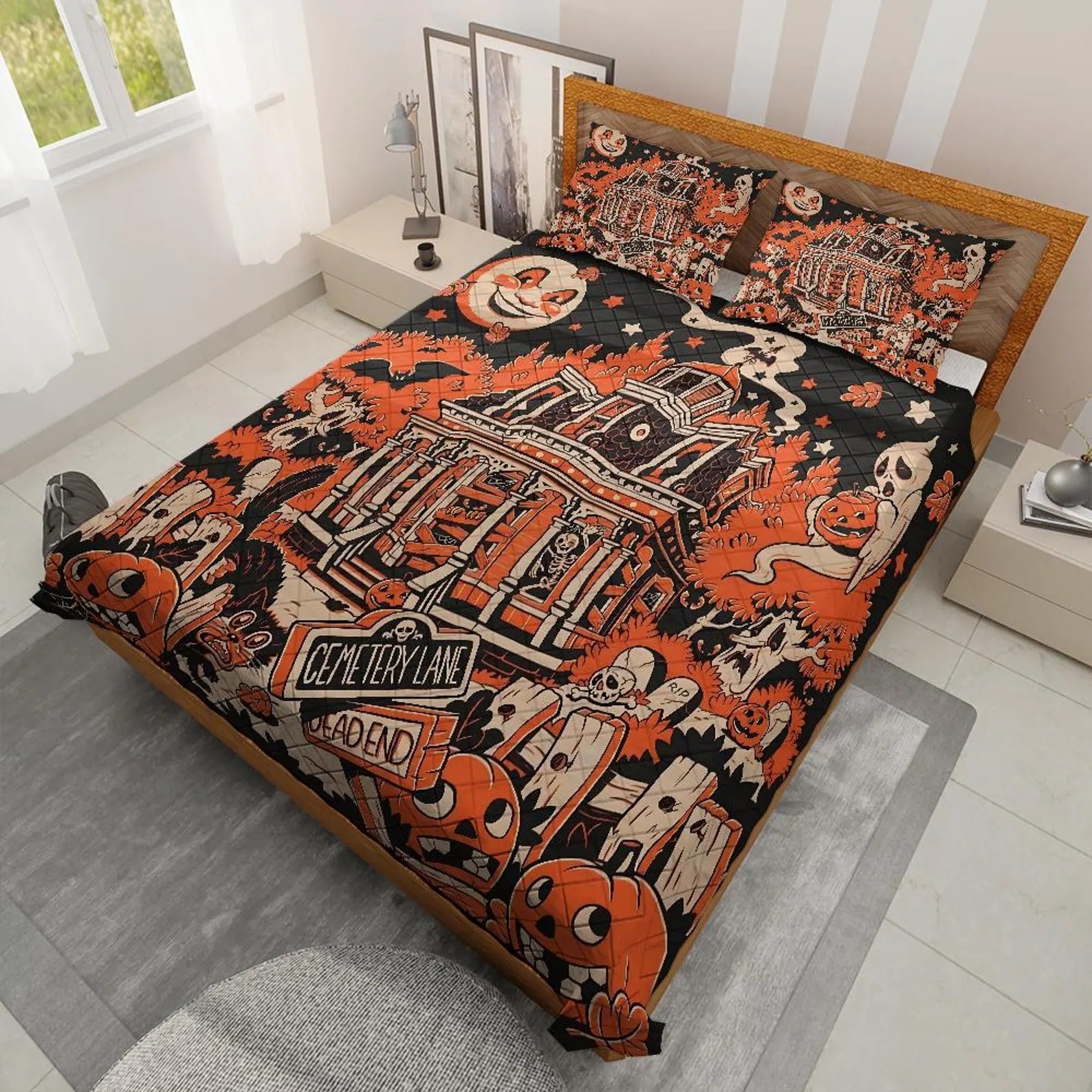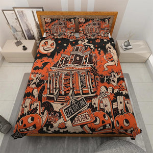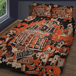 Halloween Town Quilt Bedding Set, Ghost Pumpkin Quilt Blanket, Halloween Home Decor