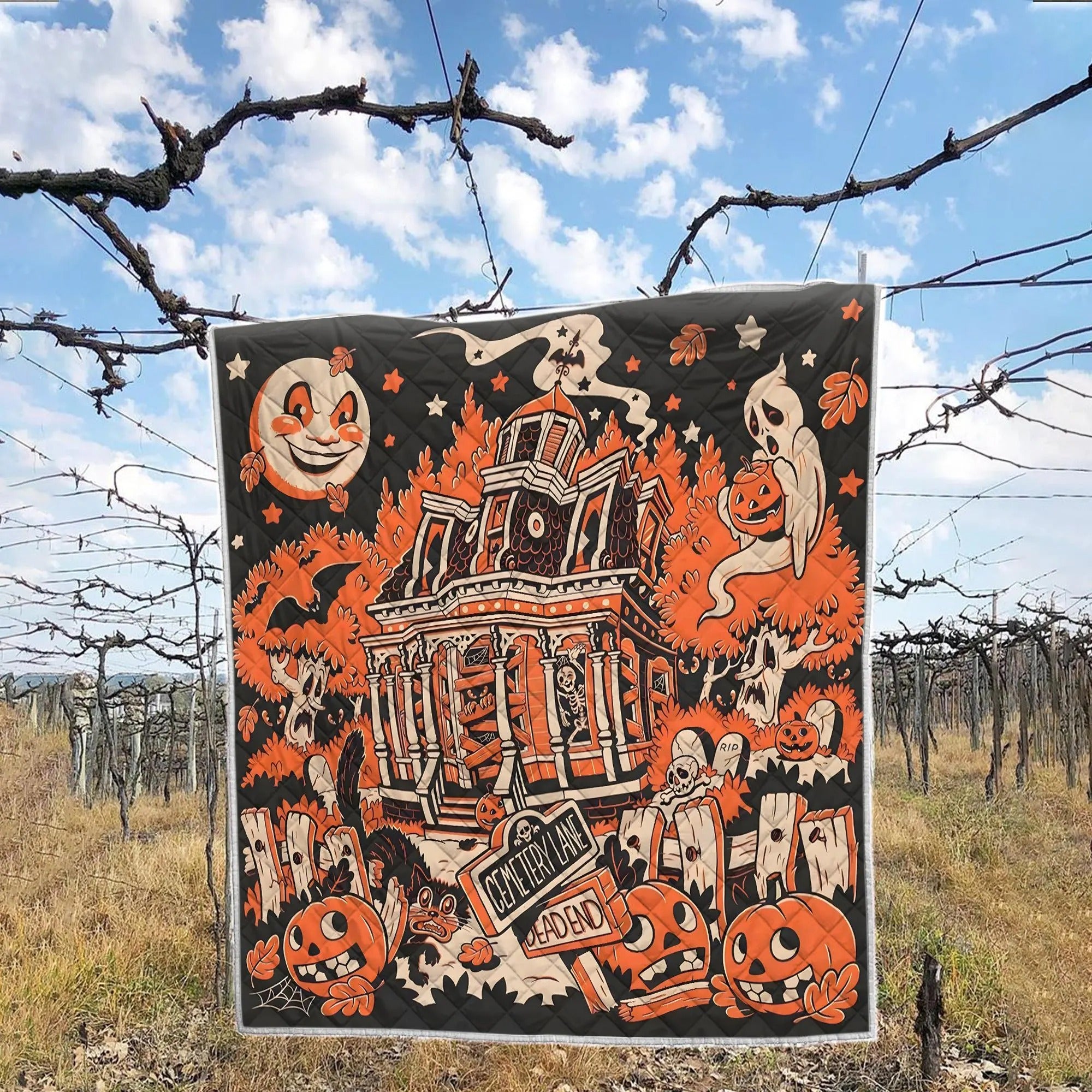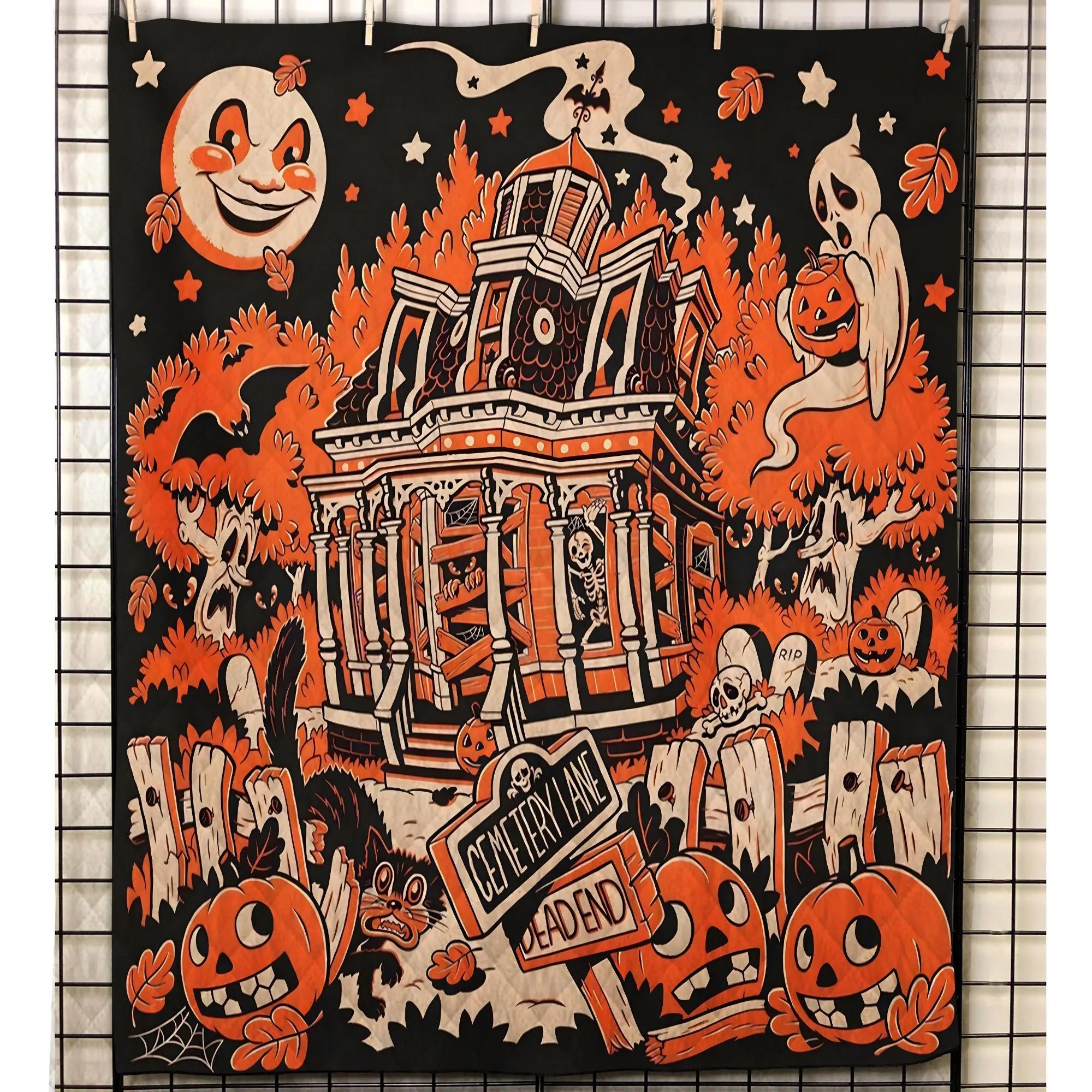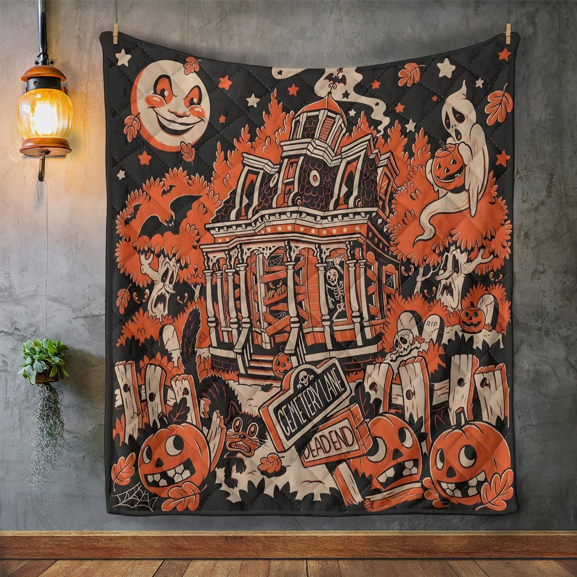 Halloween Town Quilt Bedding Set, Ghost Pumpkin Quilt Blanket, Halloween Home Decor