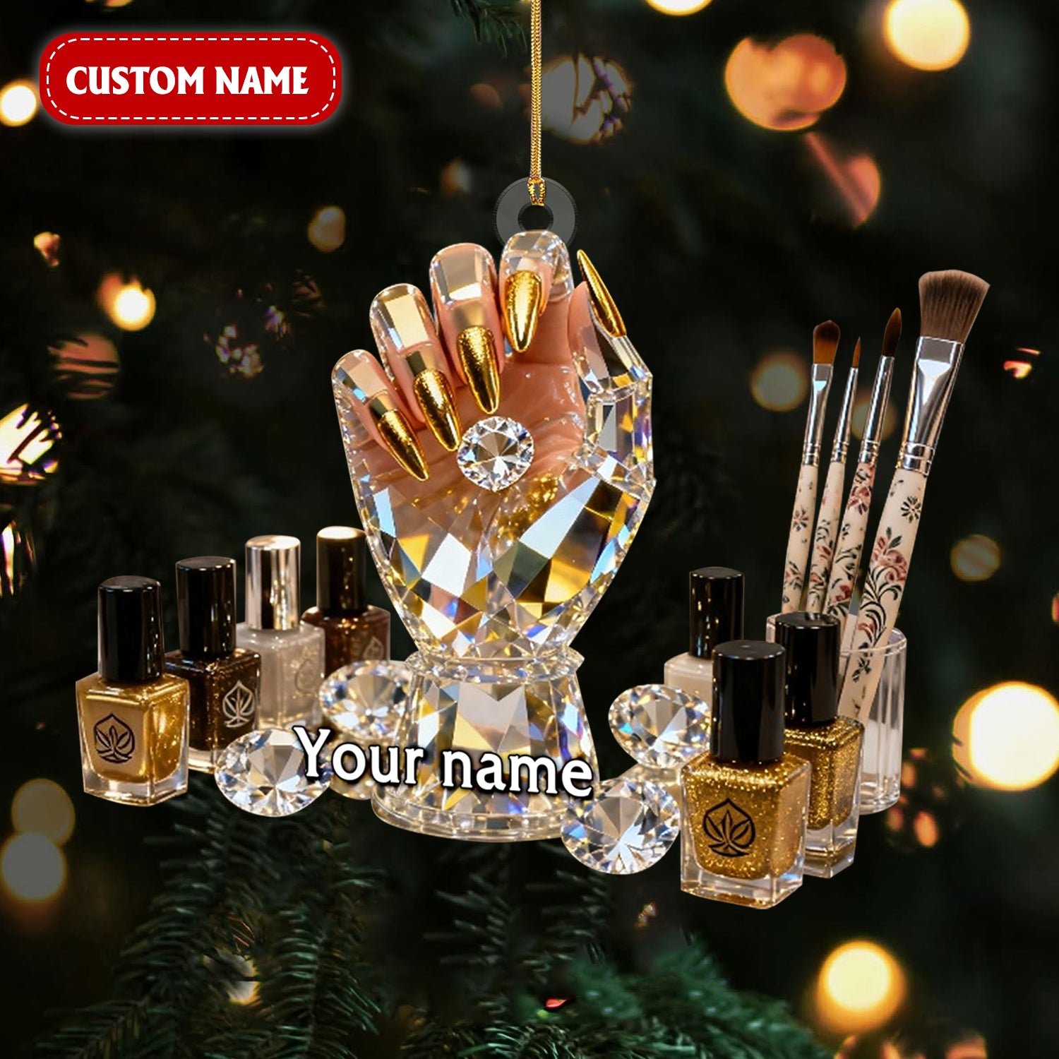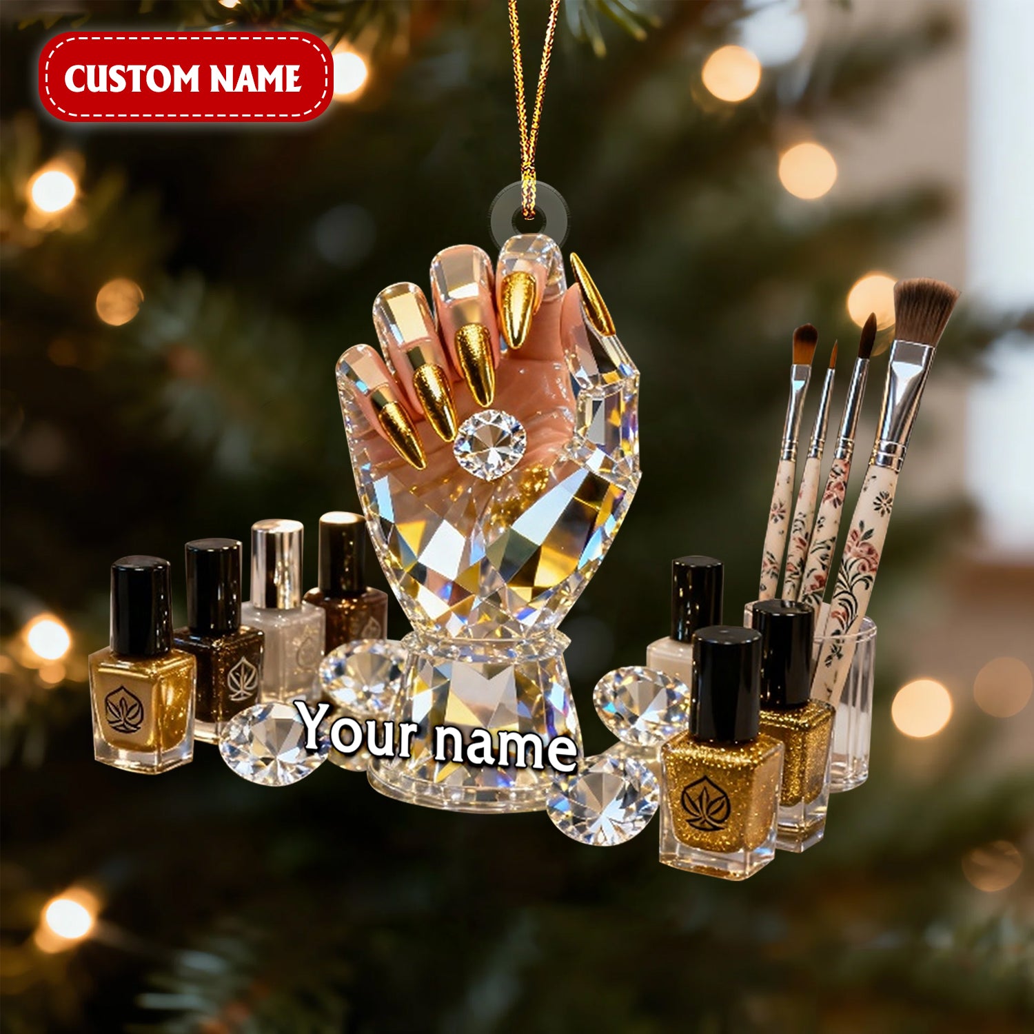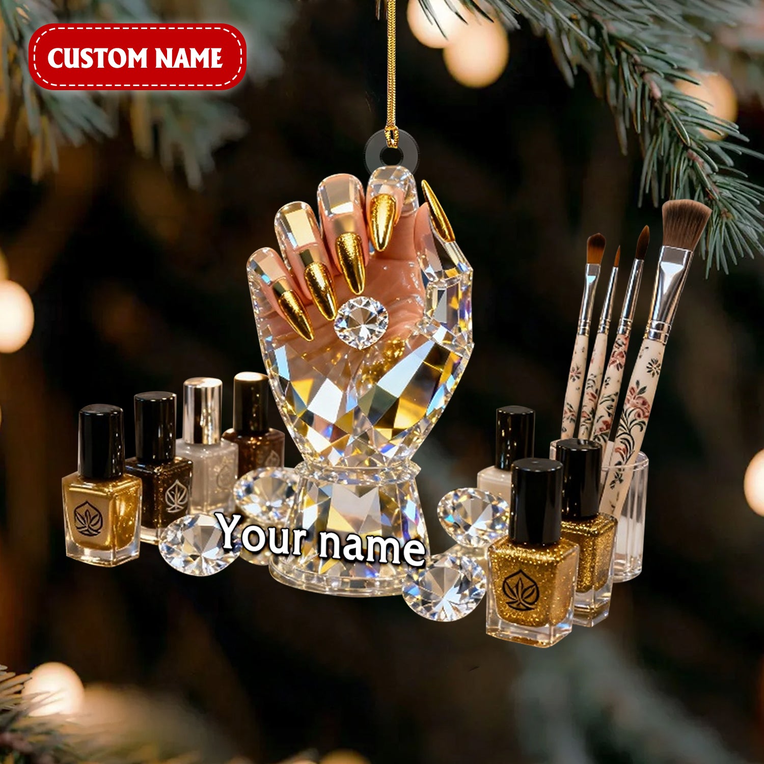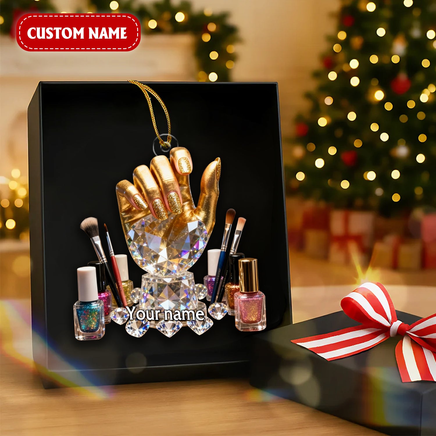 Hand Nail Art Stained Glass Crystal Effect Acrylic Ornament, Christmas Ornament Nail Art, Christmas Unique Gift
