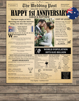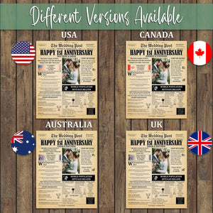 Happy 1st Anniversary Canvas Wall Art, Couple Wall Decor, Anniversary Gift For Couple