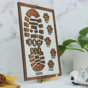 Happy Father's Day To The Best Dog Dad Personalized Dog Dad Wood Sign, 2 Layered Wood Sign Stand, Gifts For Dad, Father's Day Gift