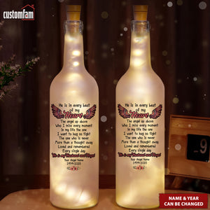 He Is My Husband And Angel Personalized Memorial Bottle Lamp, Wine Bottle Lights, Gifts For Lost Loved Ones