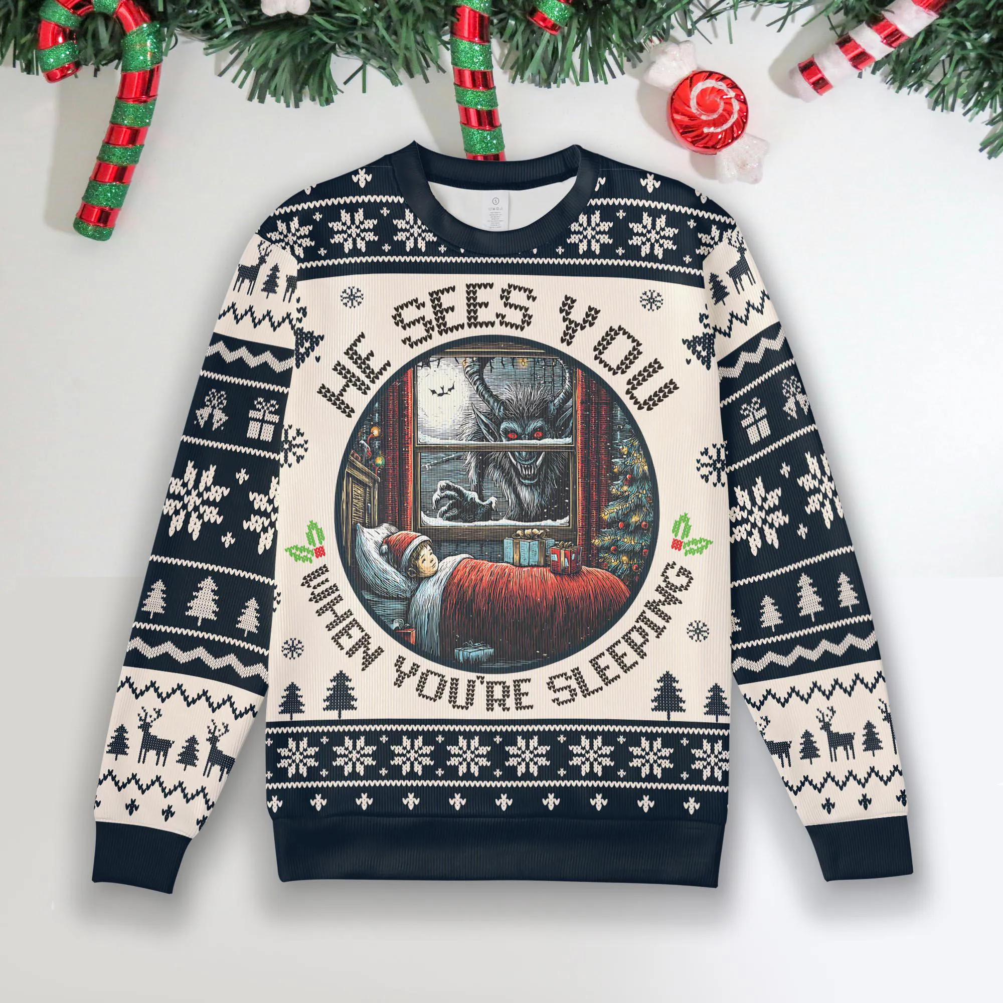 He Sees You When You’re Sleeping Krampus Gothic Christmas Sweater, Ugly Xmas Sweater, Christmas Ugly Sweatshirt