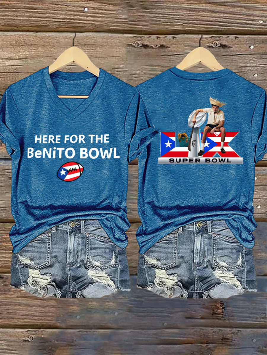 Here For The Benito Bowl Shirt, Bad Bunny Football Tee With Puerto Rico Flag Bad Bunny Gift
