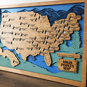 Discover the tallest peaks across the United States with our Highest Points in Each State Map. Designed for avid hikers, adventurers, and travel enthusiasts, this map lets you track the highest points in every state, providing a unique way to explore the nation’s diverse landscapes and challenging summits. Whether you're planning to summit all the highest peaks or simply enjoy outdoor adventures, this map serves as the perfect tool and keepsake for your journey.
