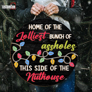 Home Of The Jolliest Bunch Custom Name Christmas Wood Sign, Christmas Home Decor