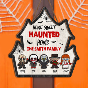 Home Sweet Haunted Home Personalized 2 Layered Halloween Horror Wood Door Sign, Horror Fan Gifts