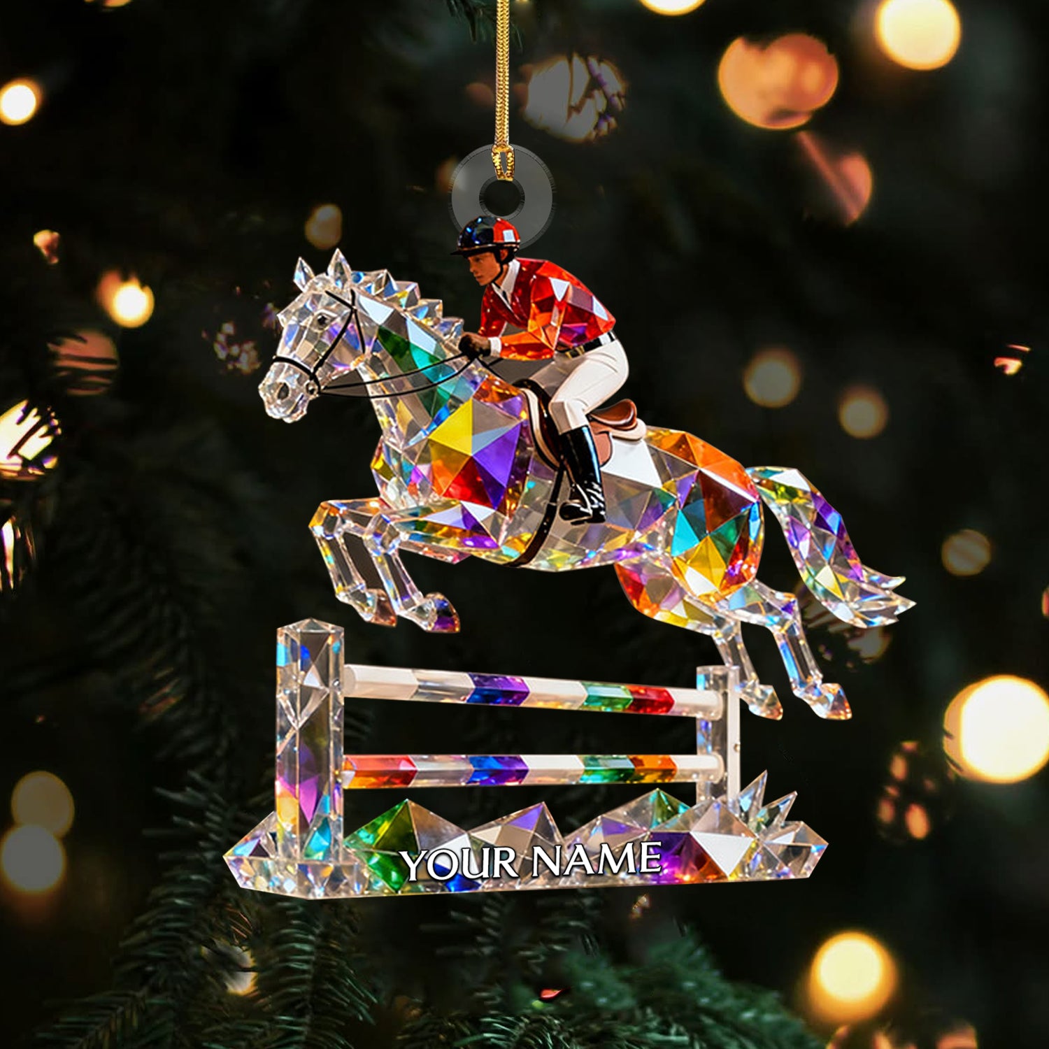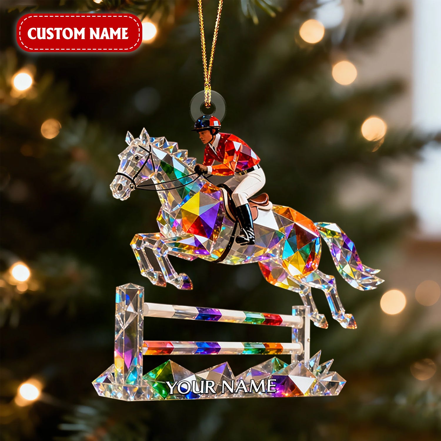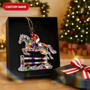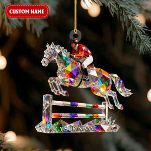 Horse Hurdles Custom Name Stained Glass Effect Acrylic Christmas Ornament, Xmas Decor, Horse Racing Gifts